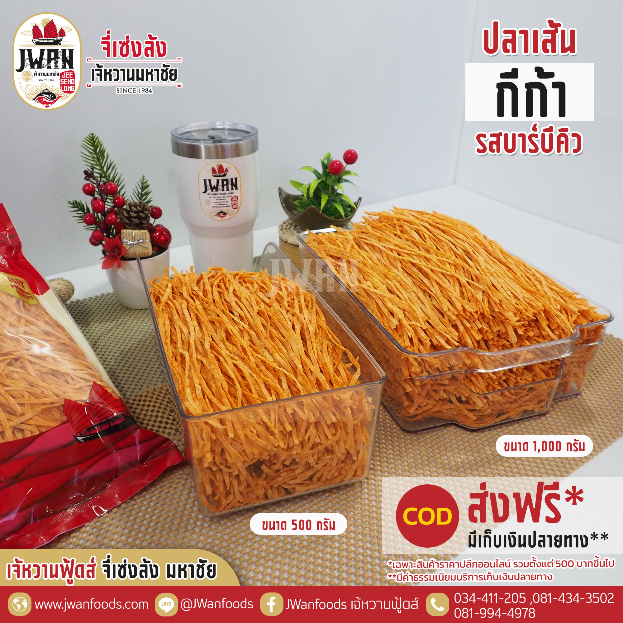 ปลาเส้นปรุงรสบาร์บีคิว เกรดเอ เนื้อเส้นยาว ฟูนิ่ม กลิ่นหอมรสบาร์บีคิว