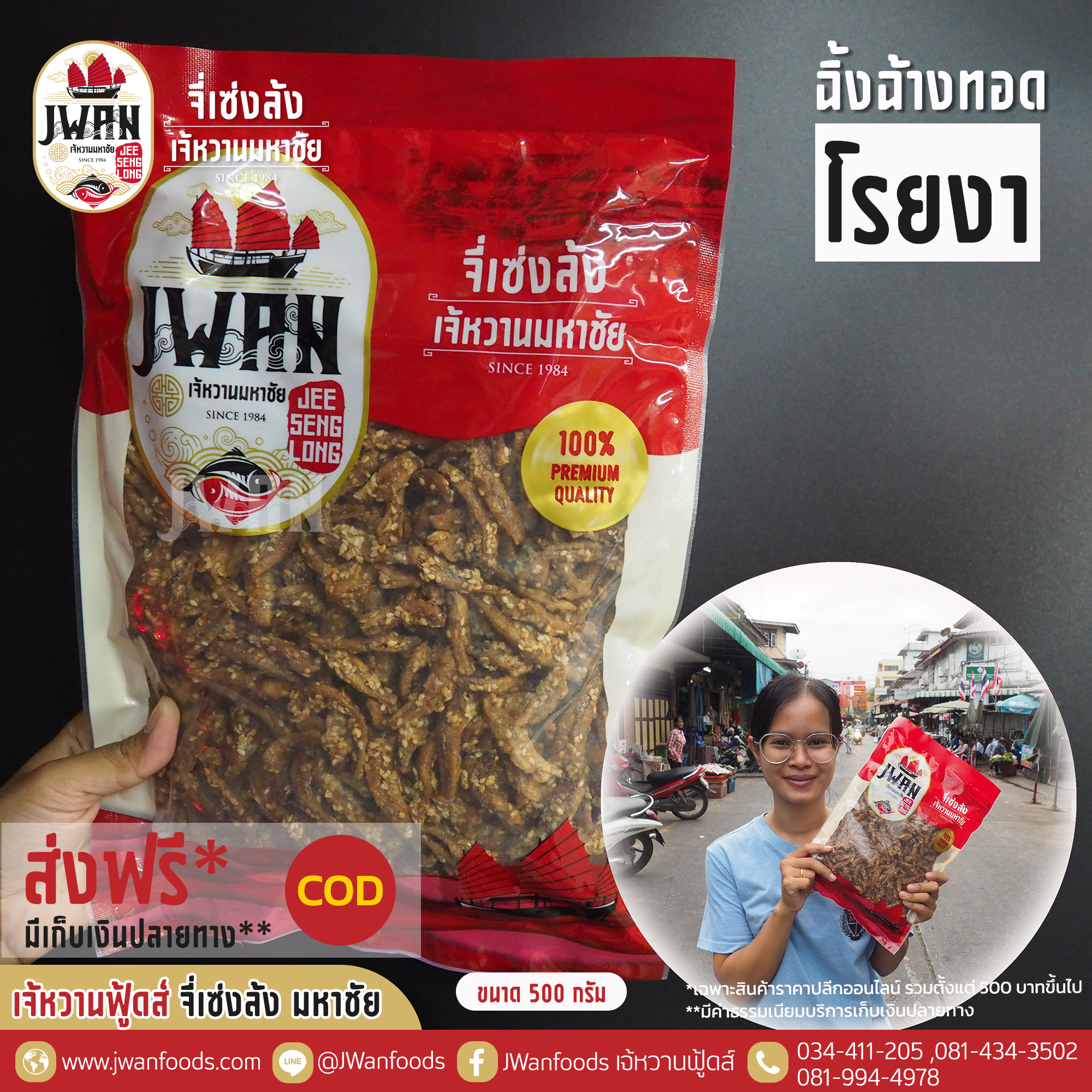 ปลาฉิ้งฉ้าง ปลาไส้ตันทอด และนำเข้าอบรีดน้ำมัน กรอบนาน โรยงาที่คัดสรรเกรดเอ จึงได้กลิ่นหอมของงาและปลาผสมกัน ทานได้เพลินๆ ได้แคลเซียมสูงจากปลาเล็กปลาน้อยและงาคุ้มค่าคุ้มราคามากๆ
