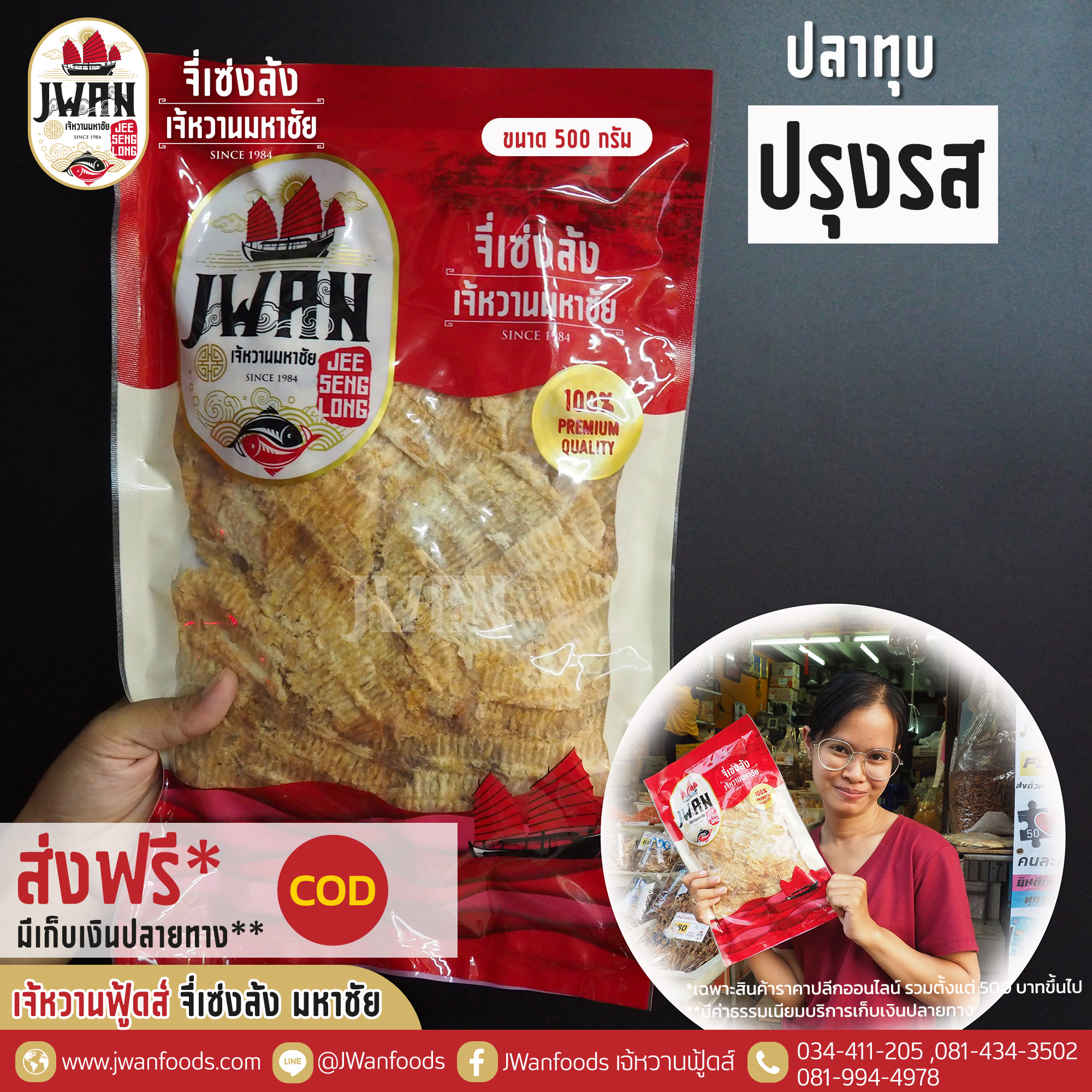 สินค้าพร้อมทาน ผลิตจากเนื้อปลาทะเล เลือกส่วนที่เป็นเนื้อล้วน เลาะก้างออก นำมาแล่ชิ้นพอดีคำ ปรุสรสแล้วนำไปตากแดด ก่อนจะผ่านกรรมวิธีการย่าง จนได้กลิ่นหอม ก่อนเข้าสู่ขบวนการการทุบบดเป็นแผ่น ที่ได้ความหนาที่พอดี จึงได้ปลาทุบปรุงรสที่มีรสชาติกลมกล่อม หอมกลิ่นเนื้อปลา เนื้อฟูนิ่ม ทานง่ายได้ประโยชน์จากเนื้อปลาเต็มๆ