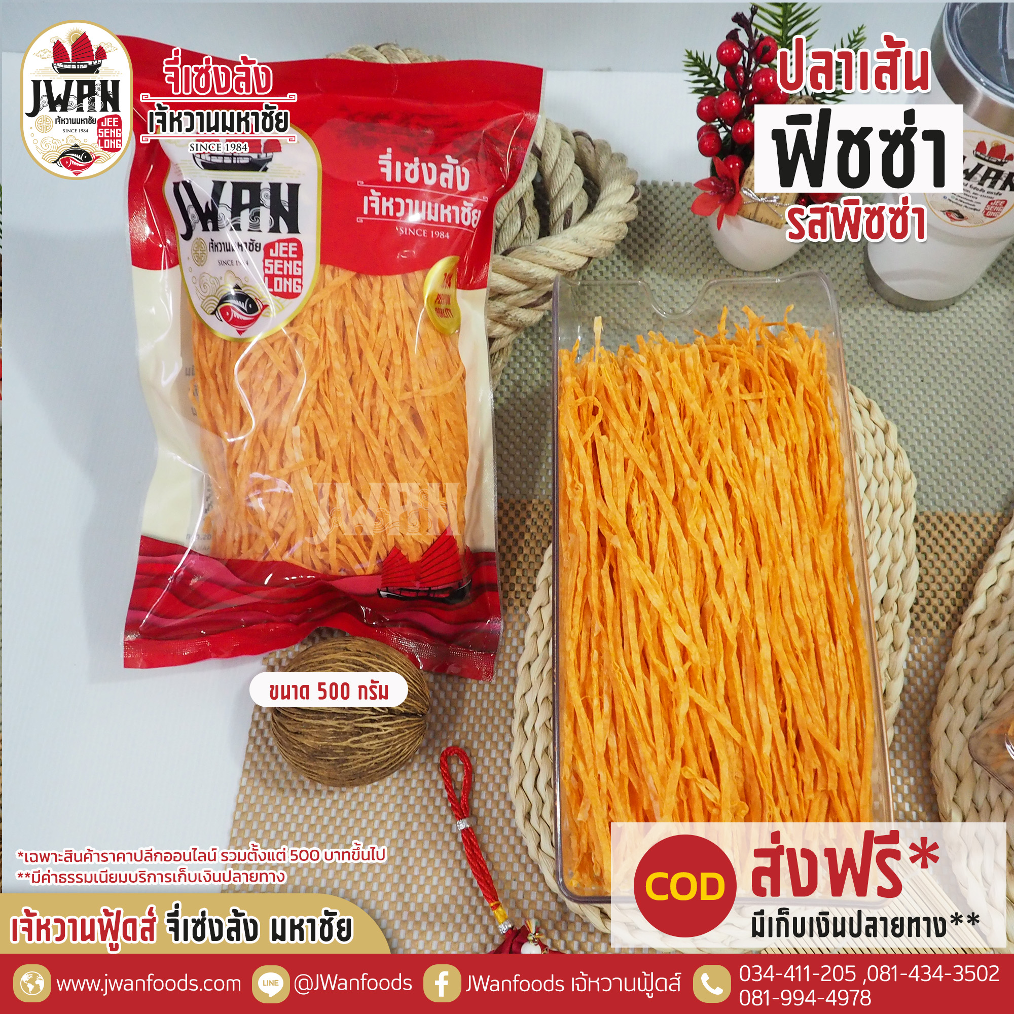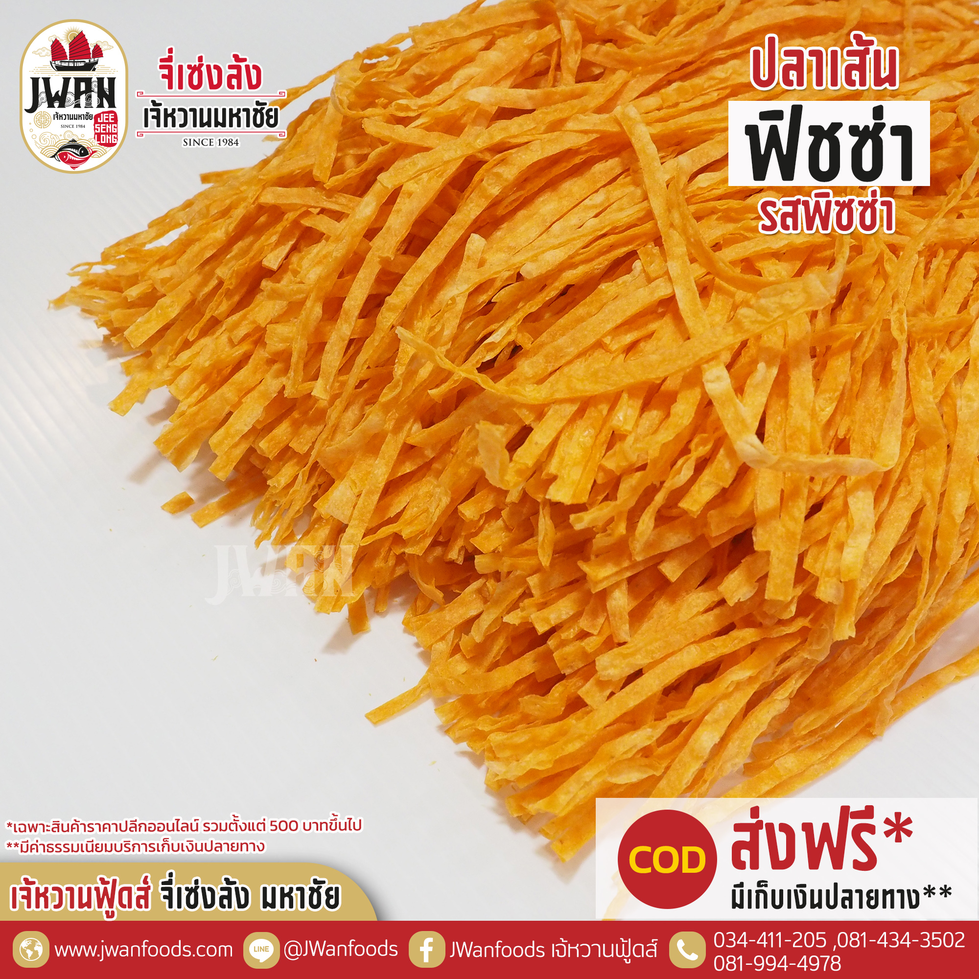 ปลาเส้นปรุงรสพิซซ่า เกรดเอ เนื้อเส้นยาว ฟูนิ่ม กลิ่นหอมรสพิซซ่า