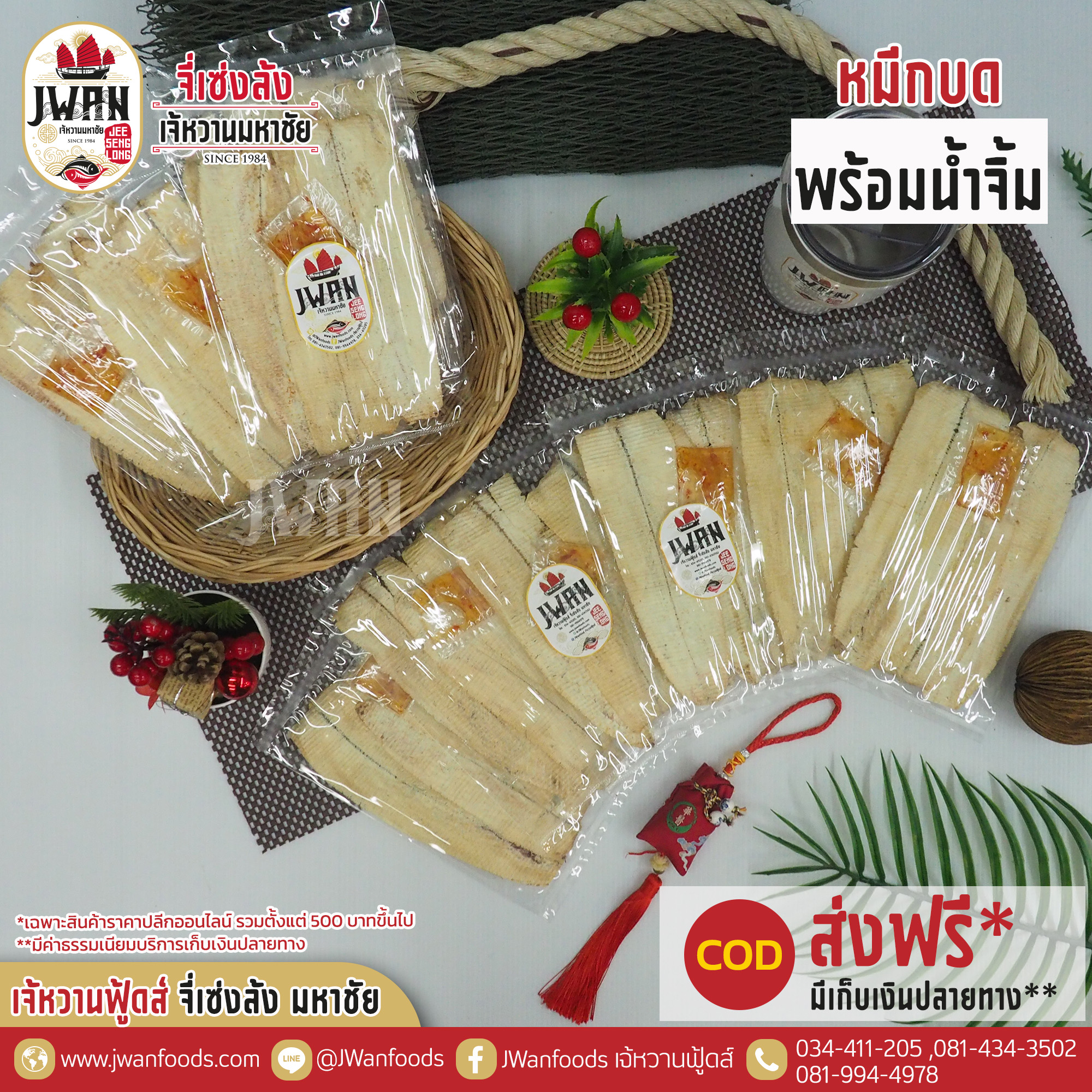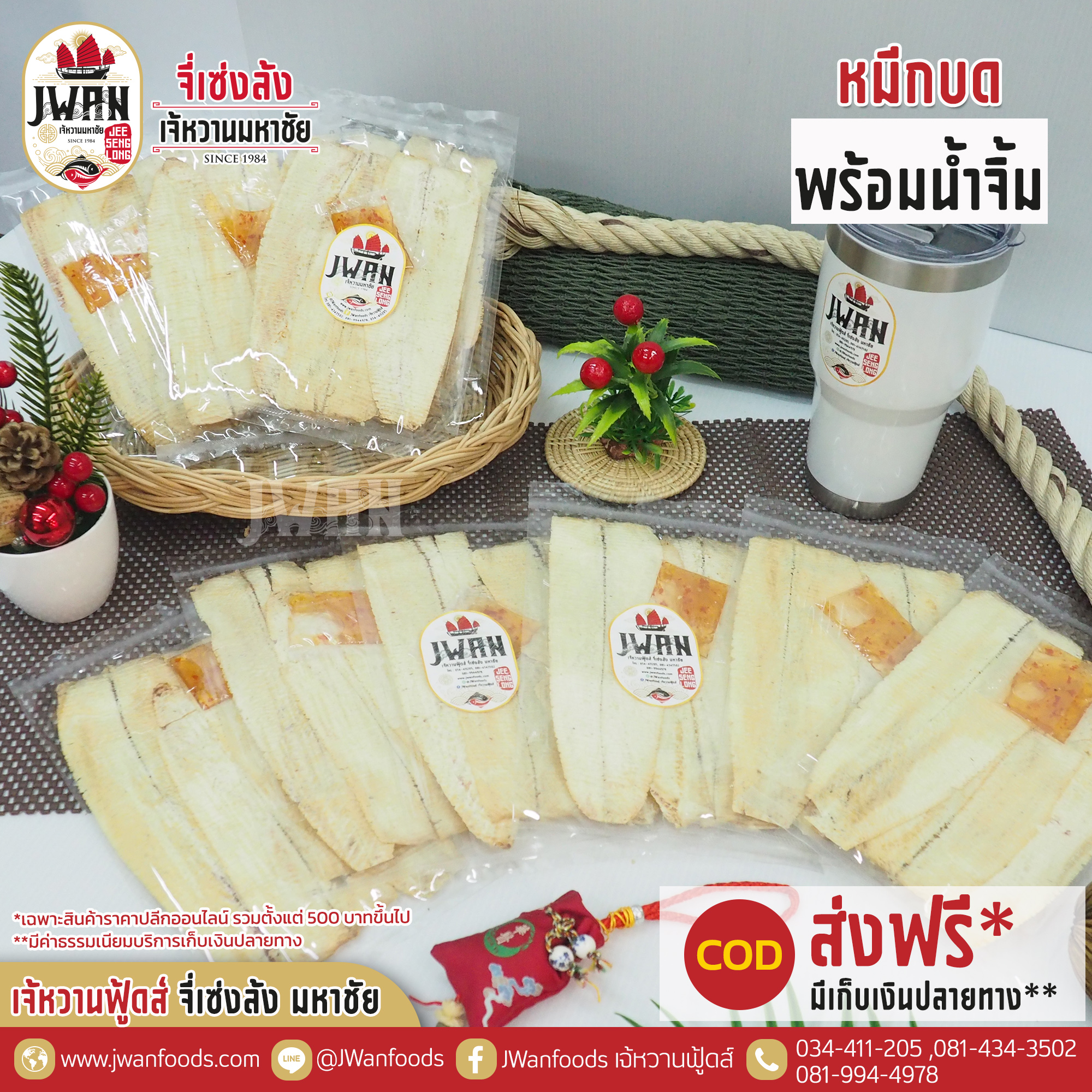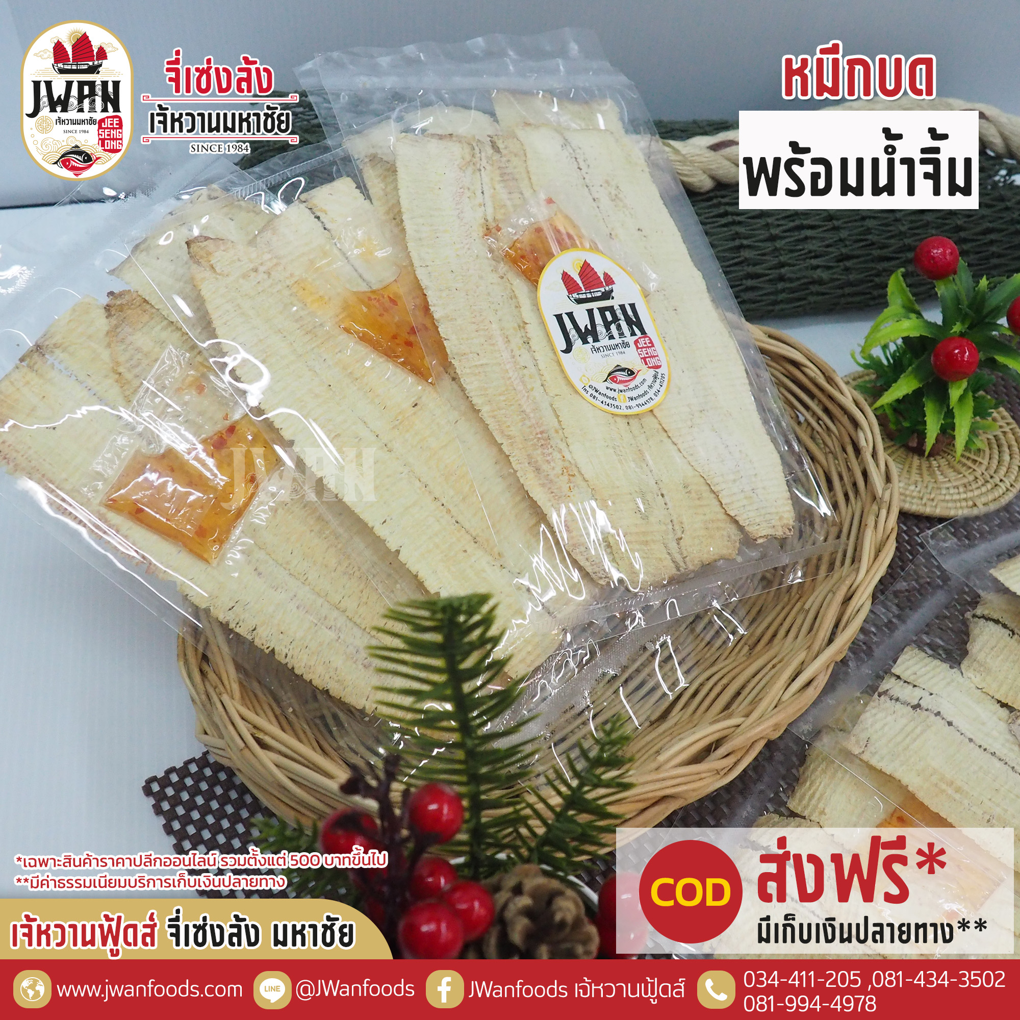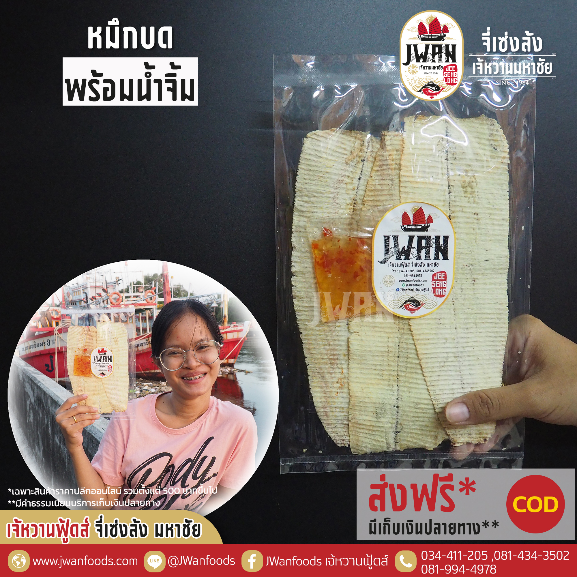 หมึกบดแห้งพร้อมน้ำจิ้ม หมึกบดตัวใหญ่ไซส์พิเศษ เนื้อบางนุ่ม สินค้าขายดี