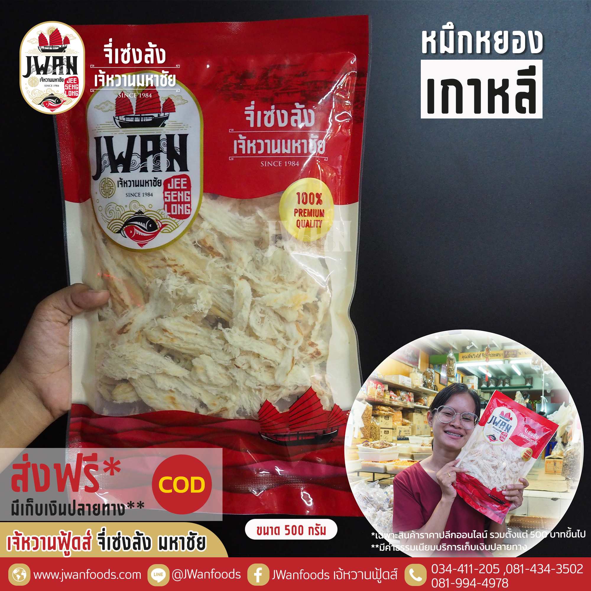 เนื้อหมึกชิ้นใหญ่เต็มคำ ปรุงรสไม่จัดจ้าน สัมผัสรสหวานของหมึกที่ไม่ได้ปรุงแต่ง จนเสียความหวานของหมึกธรรมชาติเนื้อนุ่ม ไม่เหนียว เด็กชอบทาน จะทานเป็นของว่างหรือทานกับข้าวต้มก็อร่อยไม่แพ้กัน